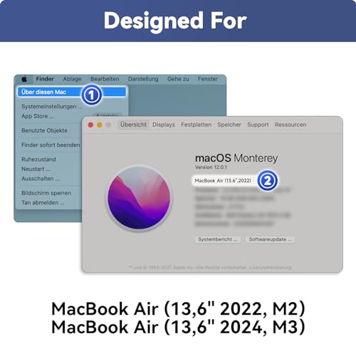 • 【Large compatibilité】Notre filtre anti lumiere bleue Mac est adapté pour Apple MacBook Air 13,6 pouces (2022/2024) avec puce M2 M3 (modèle : A2681 A3113). Veuillez vérifier la taille de l’écran et le modèle de votre Macbook avant d’acheter ce filtre de protection.