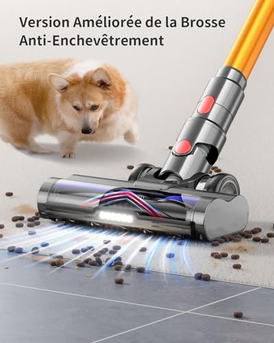 - 【Puissance d’aspiration de 45 Kpa et moteur haute performance de 550 W】 La puissante puissance d’aspiration de 45 Kpa et le moteur haute performance de 550 W de cet aspirateur sans-fil peuvent aspirer les taches tenaces et les poils d’animaux en un instant, qu’il s’agisse d’un tapis lourd ou d’un sol dur. Les miettes du matin et la poussière sous le canapé ne sont plus un soucis. Il peut gérer facilement une variété de tâches de nettoyage, gardant votre maison propre et neuve à tout moment.