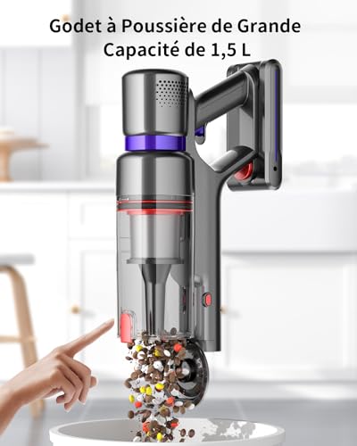 - 【Système de filtration en 7 étapes et boîte à poussière de 1,5 L】Le système de filtration intégré en 5 étapes de cet aspirateur sans fil peut capturer 99,99 % des poussières fines et des allergènes, rendant l’air évacué plus propre que l’air inhalé. Associé au bac à poussière de grande capacité de 1,5 L, vous n’avez pas besoin de vider fréquemment la poussière pendant les processus de nettoyage à long terme. Que ce soit pour les personnes allergiques ou pour les enfants et les animaux domestiques, cet aspirateur peut apporter un environnement de vie plus sain et plus frais, gardant votre maison toujours propre et neuve.