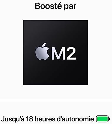 - JUSQU’À 18 HEURES D’AUTONOMIE – La batterie vous accompagne tout au long de la journée grâce aux performances énergétiques de la puce Apple M2. (L’autonomie de la batterie varie en fonction de l’utilisation et de la configuration. Pour plus d’informations, consultez apple.com/fr/batteries.)