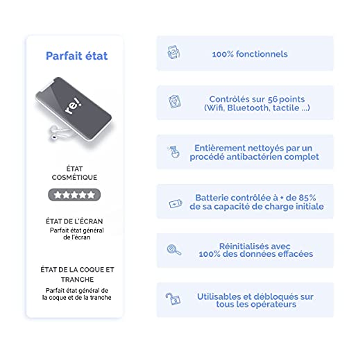 Dans mon cas, la batterie est supérieure à 90% de celle d’un produit neuf et la qualité de l’appareil est excellente. Je n’ai remarqué aucun signe de dommage cosmétique et les accessoires sont compatibles et entièrement fonctionnels. Attention, les écouteurs et la carte SIM ne sont pas inclus, mais cela ne m’a pas dérangé.