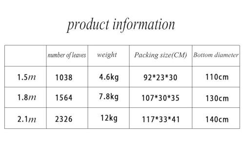 • Informations produit : Le sapin de Noël est disponible en trois tailles : 1,5/1,8/2,1 m, composé de feuilles floquées et de métal, solide et durable. Longue durée d’utilisation