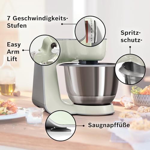Bosch MUM58L20 Robot pâtissier – Machine puissante 1000 W pour cuisine et pâtisserie – 7 vitesses + turbo – Bol en acier inoxydable 3,9 L – Avec accessoires – Couleur gris…