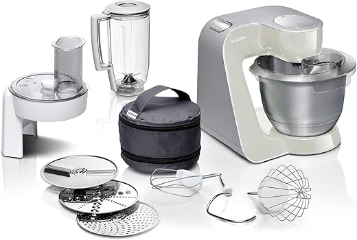 • Livraison : 1 x Bosch MUM58L20, kitchen machine pour cuisine et pâtisserie / Kit pâtisserie inox et râpeur/éminceur avec 3 disques réversibles / Format compact / Couleur : gris minéral/argent