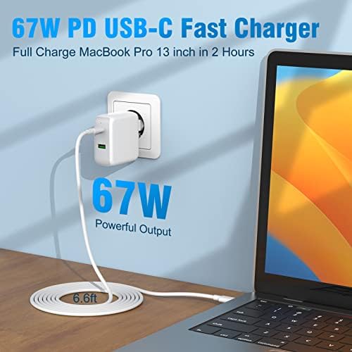 - Chargeur USB C 67W: Charge complète pour MacBook Pro 13 pouces en seulement 2 heures en utilisant un seul port USB-C. Prend en charge plusieurs protocoles de charge rapide tels que PD3.0, QC4.0+/3.0/2.0, PPS. Sortie USB-C : 20V⎓3,35A, 15V⎓3A, 12V⎓3A, 9V⎓3A, 5V⎓3A. Sortie USB A : 12V⎓1,5A, 9V⎓2A, 5V⎓3A. PPS (port USB-C) : 67W, 65W, 45W, 30W, 25W, 20W, 18W, 12W, 5W puissance intelligente.