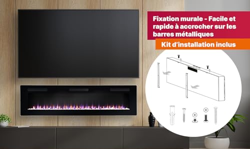 • CONTRÔLE DU FEU ÉLECTRIQUE : Connectez votre foyer électrique à votre smartphone via Bluetooth avec l’application Tuya Smart. Vous pouvez faire fonctionner la cheminée via l’affichage sur le foyer.