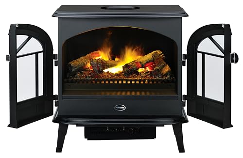 - STYLE TRADITIONNEL: Cheminée électrique au look authentique de poêle en fonte avec boîtier métallique et effet flamme breveté Optimyst, feu à base de vapeur d’eau froide
