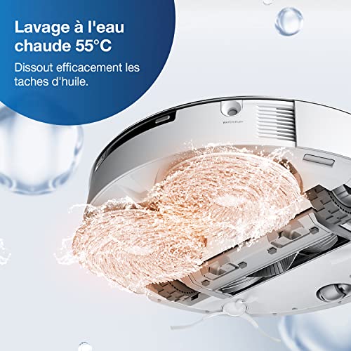 • LAVAGE INNOVANT DES SERPILLIÈRES À L’EAU CHAUDE: DEEBOT est équipé de la toute première technologie ECOVACS de lavage des serpillières à l’eau chaude 55℃. Laver les serpillières à l’eau chaude dissout les taches tenaces, élimine efficacement les odeurs et renforce l’action de la solution nettoyante.