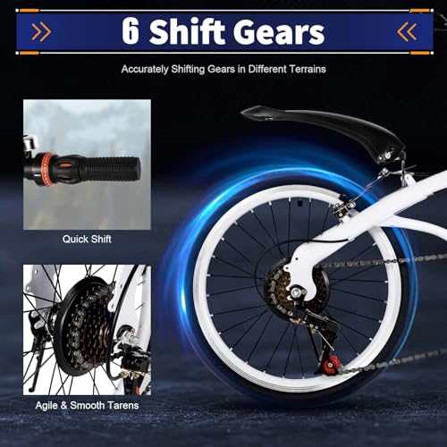 - 🎁【Design pliable】Ce vélo peut être plié, vous pouvez le ranger et le transporter facilement. La taille du vélo est particulièrement petite lorsqu’il est plié, de sorte que vous pouvez facilement le mettre dans le coffre et profiter de la conduite à tout moment, n’importe où. Ce vélo ne pèse que 13 kg, vous pouvez le déplacer et l’ouvrir facilement. Le poids léger vous empêche également de vous blesser par le vélo.