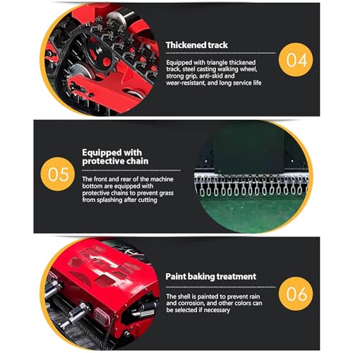 • ★TAILLE GLOBALE – 36,61×33,86×22,83″ ✅Capacité du réservoir de carburant : 4 litres ✅Poids net de la machine : 280 lb. ✅Consommation de carburant standard : 1,2 litres/heure ✅Largeur de coupe : 55 cm ✅Hauteur de coupe : 2 cm-18 cm