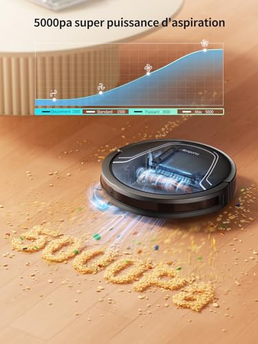 • 🌀【𝟓𝟎𝟎𝟎𝐏𝐀 𝐅𝐨𝐫𝐭𝐞 𝐏𝐮𝐢𝐬𝐬𝐚𝐧𝐜𝐞 𝐝’𝐀𝐬𝐩𝐢𝐫𝐚𝐭𝐢𝐨𝐧】Testé et mis à niveau par les développeurs, l’aspirateur robot V8 Pro dispose d’une puissance d’aspiration élevée de 5000PA et d’une couverture de nettoyage de 96%, supérieure à tous les modèles précédents! Jusqu’à 180min de temps de nettoyage, peut facilement terminer le nettoyage de la zone 200㎡, vous donnant une maison propre et bien rangé.