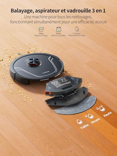 5 avis pour HONITURE Aspirateur Robot Laveur, 5000PA, Robot Aspirateur 3 en 1, Navigation Lidar pour Enregistrer 5 Cartes, Idéal pour Les Tapis De Poils d’animaux de Compagnie V8 Pro