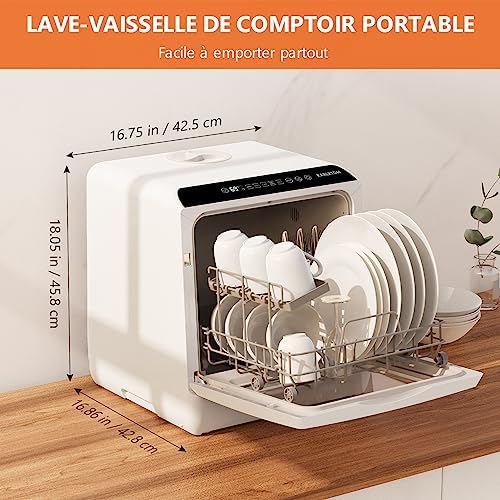 - Mini lave-vaisselle mesure 46 cm x 43 cm x 42cm (hauteur x largeur x profondeur), poids du produit : 12 kg et niveau sonore : 50 dB. Il convient aux plats d’une inclinaison maximale de 30 cm, répondant ainsi facilement aux besoins quotidiens d’une famille de 3-4 personnes. Idéal pour les petits appartements, dortoirs, bateaux, caravanes, cabanes.