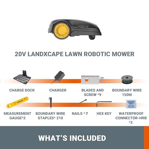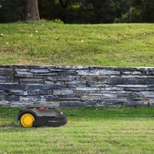 - ENTIÈREMENT AUTOMATISÉE: idéale pour les petits jardins, le robot tondeuse sans fil est une tondeuse robotisée compacte qui tond automatiquement les surfaces jusqu’à 800 m² maximum et les zones vallonnées jusqu’à ± 35 % (environ 20°), pour une pelouse impeccable sans aucun effort