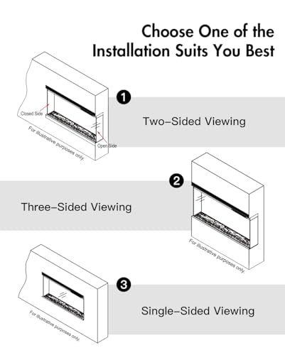 - MÉTHODES D’INSTALLATION : Encastrez 1 ou 2 côtés de la cheminée dans le mur, ou laissez les deux côtés exposés, afin d’obtenir une vue panoramique. Cette cheminée électrique est idéale si vous avez un mur en saillie.
