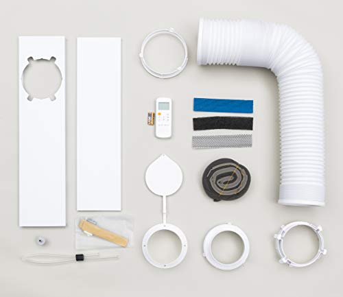 ‎Tuyau flexible pour éjection d'air (mode refroidissement et automatique). Embout de tuyau flexible côté machine, Terminal pour tuyau flexible pour installation Slider Slider pour installation à fenêtre coulissante, volet roulant Équerre + vis pour blocage de fenêtre Terminal tuyau flexible, bride et chevilles pour installation fixe 2 supports pour installation Slider. Tuyau d'évacuation de la condensation (mode seule déshumidification) Embout adaptateur pour tuyau d'évacuation de la condensation Manuel, Télécommande Filtres additionnels