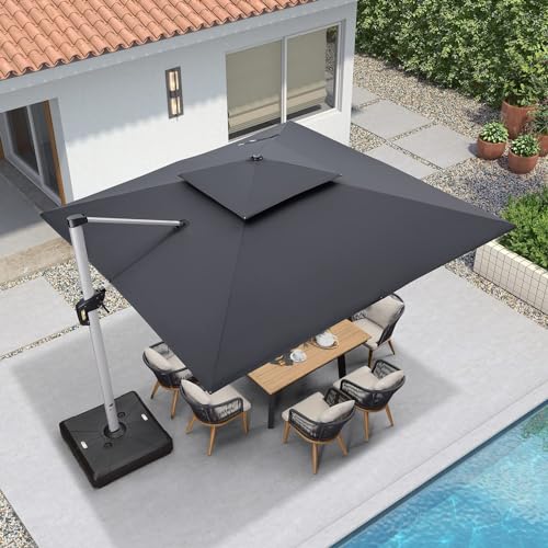 - Le parasol PURPLE LEAF conception double haut de gamme est livré avec une base de 150 KG et un abat-jour de couleur kaki, vous offrant un espace ombragé frais et confortable. Répondre à vos nombreux besoins, tels que les repas en plein air, les fêtes, les pique-niques et autres activités