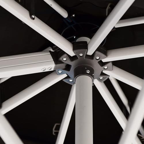 - Mât de parasol en aluminium avec 8 baleines robustes, recouvert d’une peinture antioxydante pour éviter la rouille, pivotant sur 360 degrés