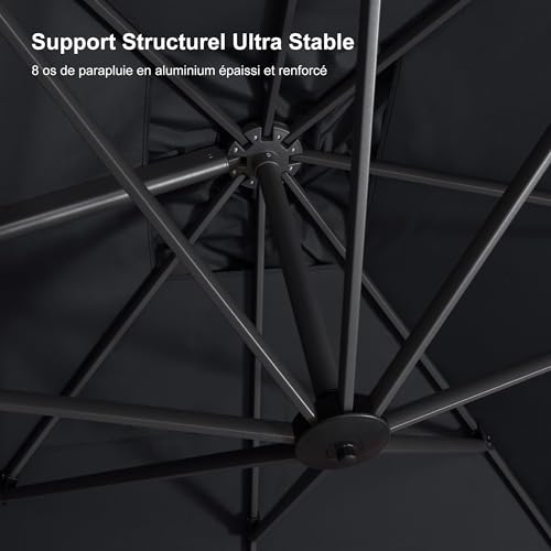 • PURPLE LEAF parasol de jardin entièrement en aluminium est livré avec 8 baleines robustes, ce qui le rend très solide et durable et ne rouille pas facilement. Adopter un assemblage de structure triangulaire pour améliorer la stabilité