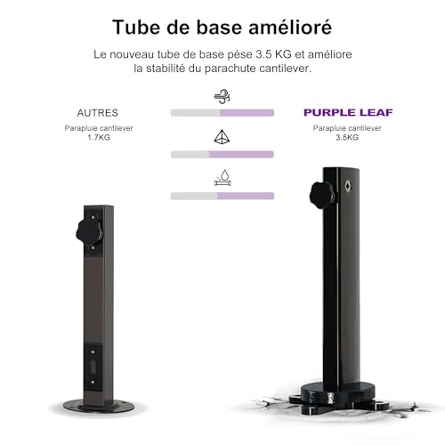 • Le parapluie déporté PURPLE LEAF est ventilé et a un bon effet de protection solaire, vous offrant un espace ombragé frais et confortable. Répondre à vos nombreux besoins, tels que les repas en plein air, les fêtes, les pique-niques et autres activité