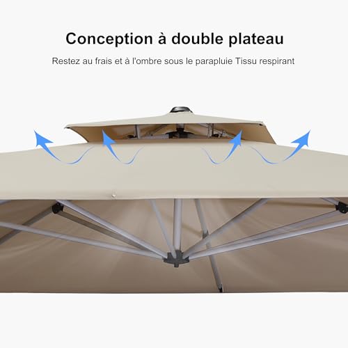 11 avis pour PURPLE LEAF Parasol Déporté 3 x 3 m Carré, Parasol De Jardin Extérieur Toit à Double Rotatif 360° avec Housse de Protection Luxueux, Kaki marron