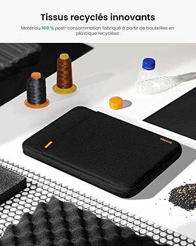 • La Qualité Rencontre La Performance : Le tissu recyclé de haute qualité résistant aux éclaboussures, les fermetures éclair YKK, la doublure intérieure douce et bien pensée et la finition artisanale répondent aux normes les plus élevées pour une housse d’ordinateur portable. Nous utilisons des tissus recyclés et avons consommé des centaines de milliers de bouteilles en plastique jetées pour sauver notre planète, car nous misons sur une philosophie de conception centrée sur l’homme.